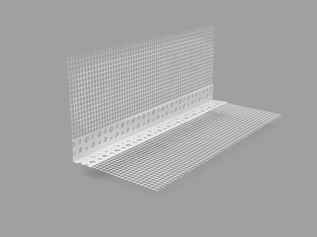 Narożnik - Kątownik - PCV stosowany jako element wykończeń naroży w systemach dociepleń metodą lekką mokrą z siatką o wymiarach siatki 70x70mm.